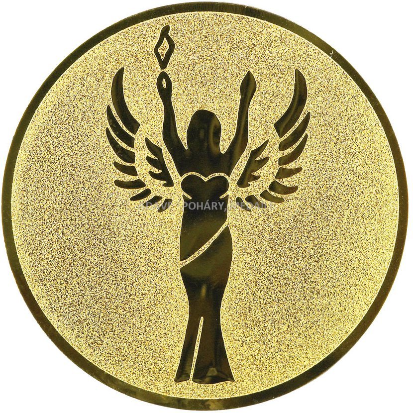 Kovový zlatý emblém o průměru 25mm. Emblémy se vlepují do středu medailí, na pokličky pohárů, do stojánků a dalších sportovních trofejí. Kovové emblémy představují na 300 různých druhů sportů a dovedností.