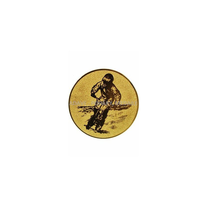 Kovový zlatý emblém o průměru 50mm. Emblémy se vlepují do středu medailí, na pokličky pohárů, do stojánků, do kokard a dalších sportovních trofejí. Kovové emblémy představují na 300 různých druhů sportů a dovedností.