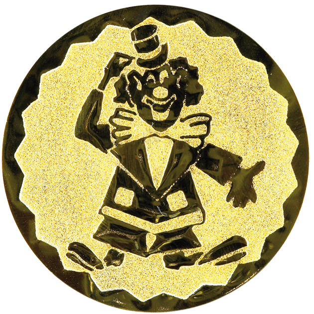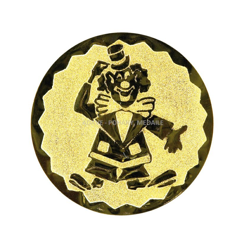 Kovový zlatý emblém o průměru 50mm. Emblémy se vlepují do středu medailí, na pokličky pohárů, do stojánků a dalších sportovních trofejí. Kovové emblémy představují na 300 různých druhů sportů a dovedností.