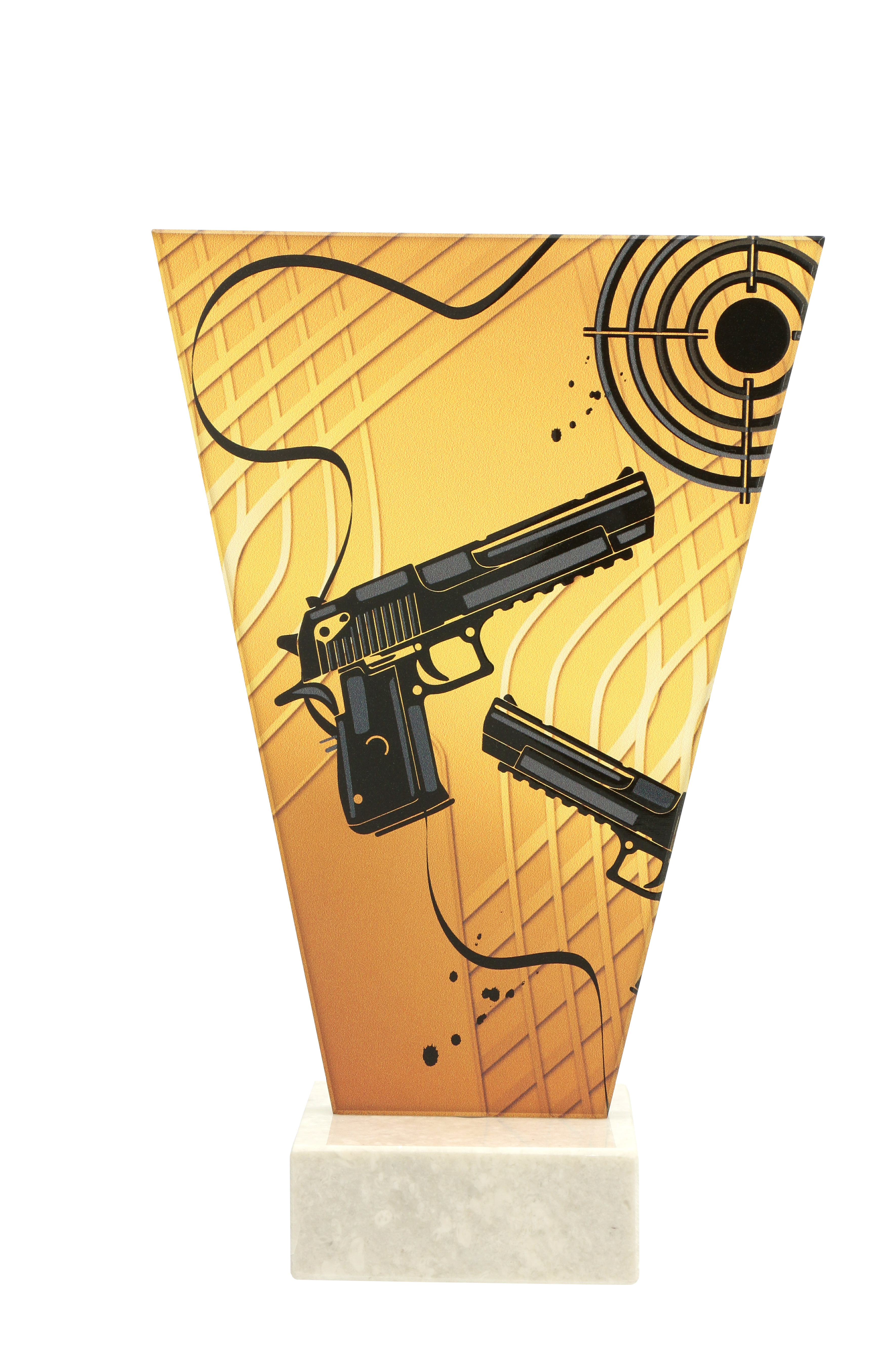 Parametry produktu  Skleněná plaketa střelba 17,5cm