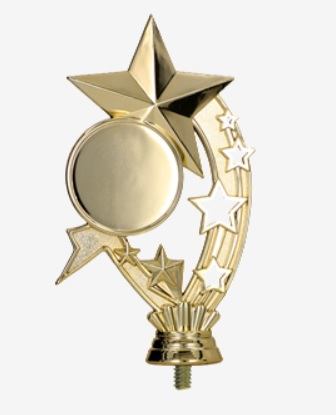 Sošk hvězdy, univezální. Sošku lze umístnit na pokličky pohárů nebo na mramorový podstavec například mramor šedý 6,3x2cm. Štítek na podstavec s vaším libovolným textem nebo logem může být: tištěný, kovový s potiskem, kovový s rytím. Materiál plast.