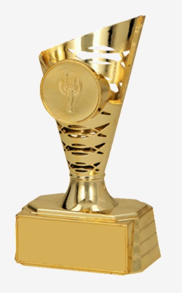 Na podstavec sportovního poháru můžeme vlepit štítek s libovolným textem či logem. Štítky děláme z folie, kovové s folií nebo kovové s rytím.